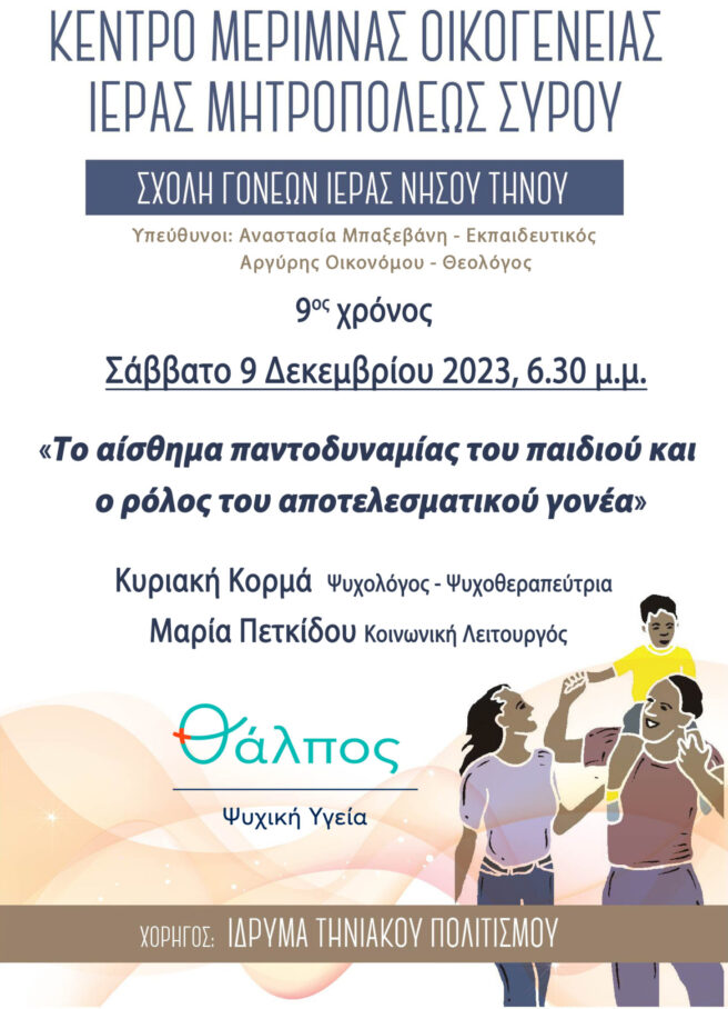 2η Συνάντηση Σχολής Γονέων. Σάββατο 9/12/2023
