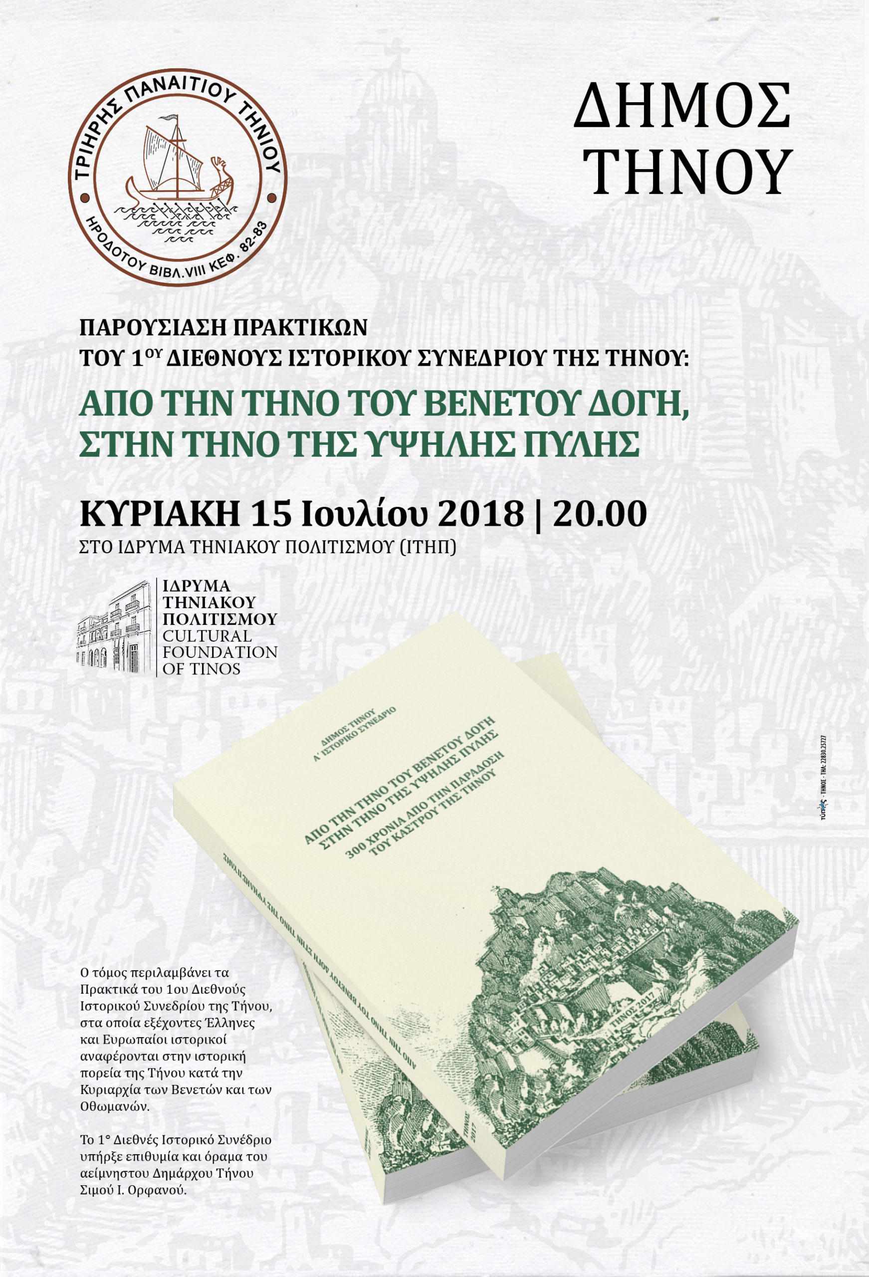 Το Ίδρυμα Τηνιακού Πολιτισμού σας προσκαλεί την Τετάρτη, 4 Σεπτεμβρίου 2024, στις 8:00 μ.μ., στα εγκαίνια της έκθεσης του ΚΩΝΣΤΑΝΤΙΝΟΥ ΣΑΜΠΑΝΗ “ΤΗΝΙΑΚΟΣ ΔΙΑΛΟΓΙΣΜΟΣ” “Εξερευνώντας