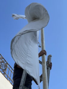 The results of the action, which is constantly in progress, are co-forged by Kyriaki Costa together with the inhabitants of Tinos, the air, which plays a dominant role on the island and the participant craftsmen and the artisans. Through this partnership, Head and Hand / Kairos raises questions regarding the relationship between functionality and beauty, contemporary art and everyday life, care and appropriation of common elements.