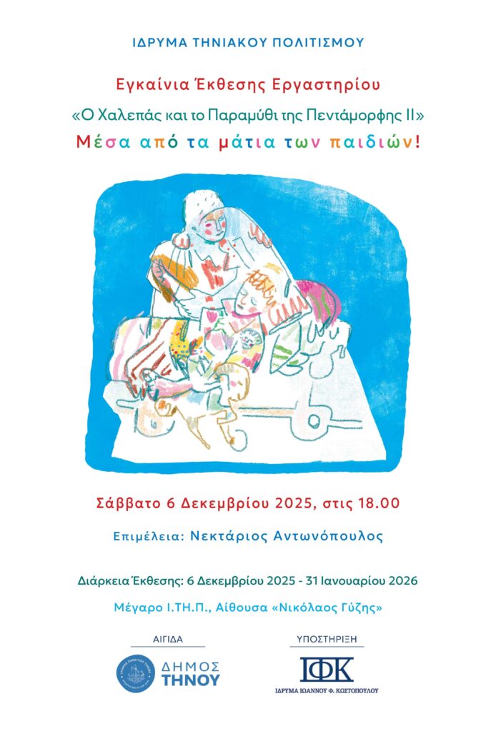 Τα έργα της έκθεσης συνιστούν αποτέλεσμα ενός κύκλου εργαστηρίων που πραγματοποιήθηκαν από το Ίδρυμα Τηνιακού Πολιτισμού με την υποστήριξη του Ιδρύματος Ιωάννου Φ. Κωστοπούλου τον Απρίλιο και τον Μάιο του 2025. Την υλοποίησή τους ανέλαβε ο ζωγράφος – αγιογράφος Νεκτάριος Αντωνόπουλος και στα εργαστήρια μετείχαν 58 παιδιά της Τήνου, ηλικίας δημοτικού και γυμνασίου. Αφορμή για την πραγματοποίηση του προγράμματος αποτελεί η επέτειος των είκοσι χρόνων από τον εγκαινιασμό της μόνιμης έκθεσης του Ιδρύματος «Ο Γιαννούλης Χαλεπάς στο Ίδρυμα Τηνιακού Πολιτισμού» με πρωτότυπα έργα του μεγάλου Τήνιου γλύπτη, συλλογής του Πανελληνίου Ιερού Ιδρύματος Ευαγγελιστρίας Τήνου.
